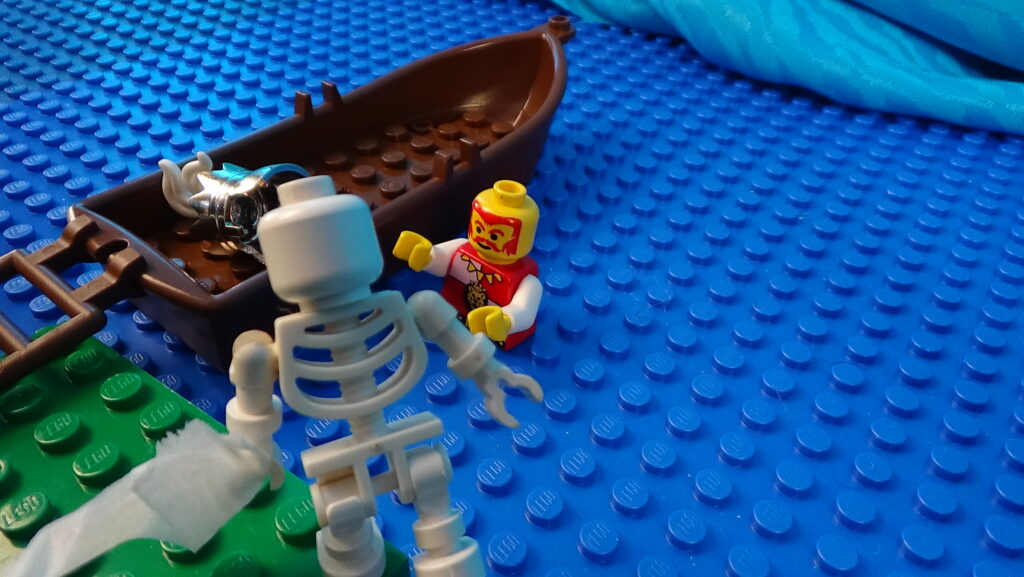 Otroška slikanica, ki prikazuje, kako je srednjeveški kralj ob pomoči okostnjaka premagal svoj strah pred ne-nošenjem plenic. Primerna je za branje vsakomur nad tremi leti starosti.
